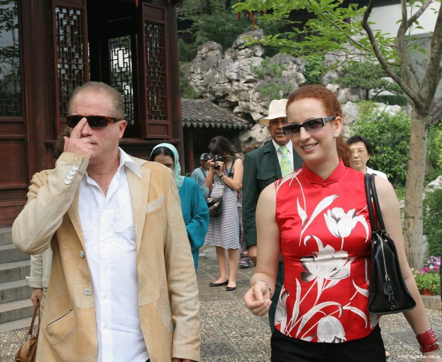 2006年6月18日,摩洛哥六世国王夫人拉拉.萨尔玛公主(右)一行来园参观访问。