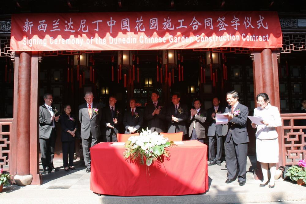 2006年11月8日,新西兰达尼丁市中国花园施工合同签字仪式在豫园举行。