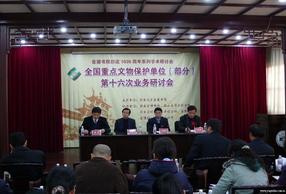 2006年12月1日至12月3日,全国重点文物保护单位(部分)第十六次业务研讨会在湖南岳麓书院成功举行。图为研讨会开幕式场景。