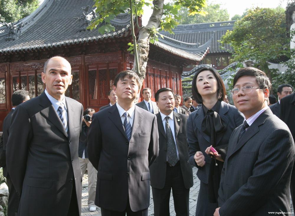2007年11月11日,斯洛文尼亚共和国总理雅奈兹.扬沙(左一)一行来园参观访问。