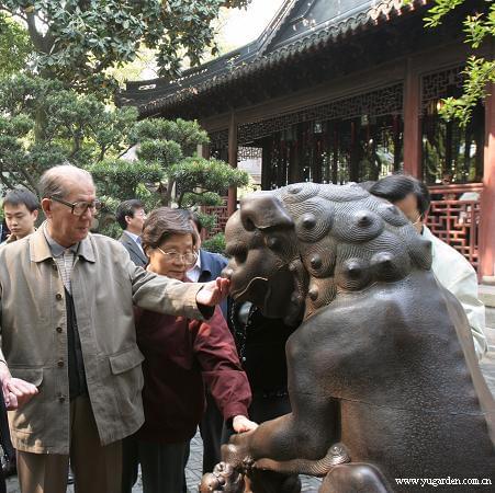 2008年4月24日,原全国人大副委员长倪志福(左)在黄浦区人大主任施兴忠的陪同下,来园视察文物保护工作。