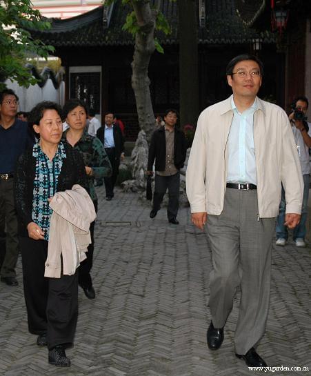 2008年5月6日,中共黄浦区委书记王文涛(右)陪同中共北京市委组织部领导(左)一行来园视察文物保护和开放接待工作。