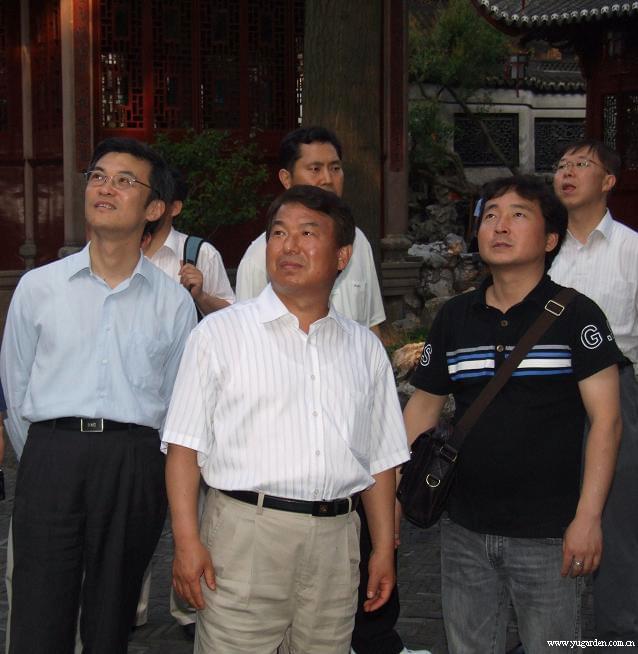 2008年5月22日,韩国釜山广域莲堤区公务员代表团一行在黄浦区文化局副局长叶盛(左一)的陪同下,来园参观访问。