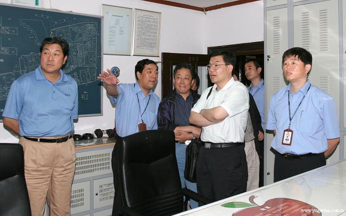 2008年5月30日,由国家文物局副局长董保华带领的专家组一行,来园检察豫园“迎奥运”安全保卫工作。专家组检查了豫园的24小时监控室、文物库房、文物展示厅等重要场所,抽查了部分开放区域的保卫消防设施,还对部分职工进行了随机提问,并听取了豫园关于“迎奥运”安全保卫工作情况汇报。在听取工作汇报后,董保华副局长结合检查结果,对豫园文物保护和安全保卫工作给予了高度肯定,并希望豫园再接再厉,在“人防、技防、物防、犬防”工作中,取得更出色的成绩,确保豫园这一国宝单位的万无一失。图为董保华副局长(左一)实地查看豫园监控室。