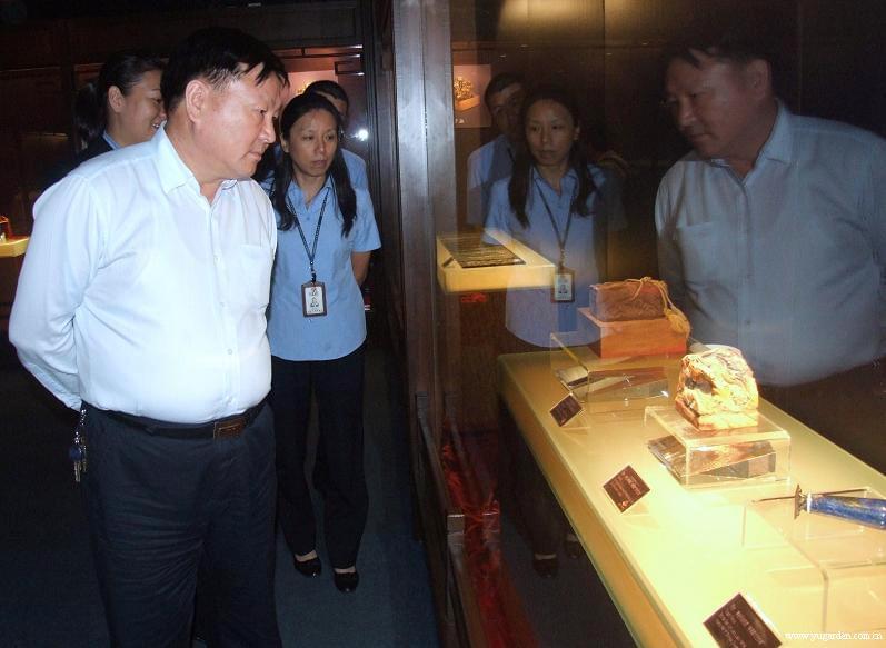2008年10月6日,黄浦区文化局党委书记刘学明莅临豫园视察节后开放接待工作。图为刘学明书记(前一)正在视察“历史印迹—故宫博物院藏清宫帝后印玺展”。