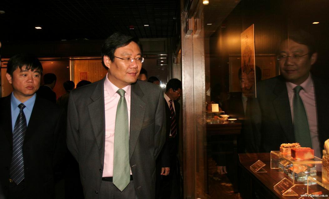 2008年11月5日,中共黄浦区委书记王文涛(右)来园参观了正在豫园听涛阁举办的“历史印迹—故宫博物院藏清宫帝后印玺展”。