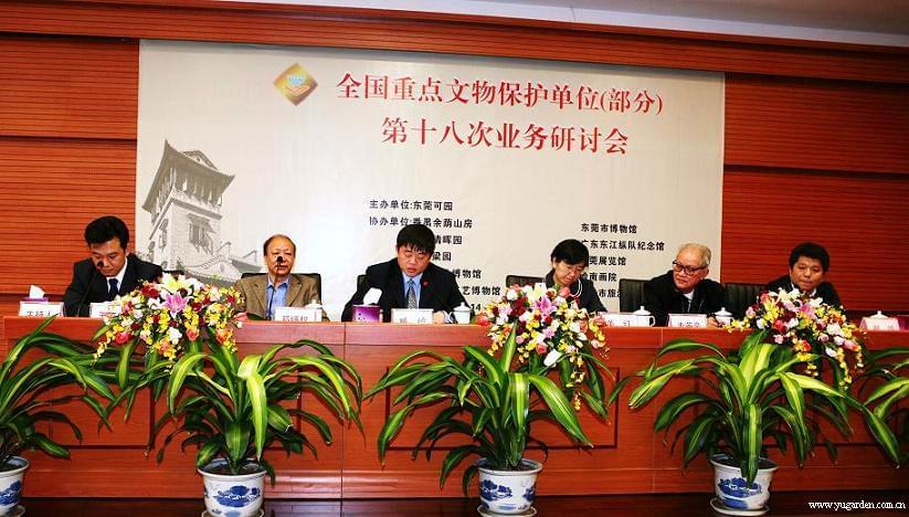 2008年11月12日至11月14日,第十八次全国重点文物保护单位(部分)业务研讨会在广东东莞成功举行。本次研讨会由东莞可园博物馆承办。在3天的会期中,各地与会代表围绕文物保护管理的主题,积极开展了各种形式多样的交流和座谈,圆满完成了会议各项议程,达到了良好的预期效果,增进了彼此间的了解和友谊。参加本次研讨会的全国重点文物保护单位有:北京颐和园、广东东莞可园、苏州拙政园、苏州留园、太原晋祠博物馆、山东邹城文物局、山东曲阜文物局、湖南岳麓书院、杭州岳庙、西安大雁塔保管所、华清池文物保管所、庐山会议旧址纪念馆、保定莲池书院、上海豫园等十四家会员单位。会议还特邀番禺余荫山房、佛山梁园、顺德清晖园、广州陈家祠、开平碉楼文化办公室、鸦片战争博物馆、东莞市博物馆、广东东江纵队纪念馆、东莞展览馆、岭南画院等兄弟单位与会。图为“第十八次全国重点文物保护单位(部分)业务研讨会”开幕式。