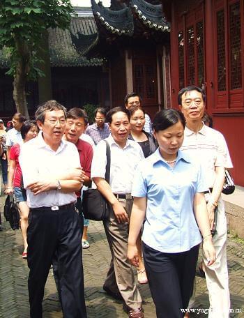 2009年8月14日,黄浦区学习实践科学发展观领导小组一行来园视察豫园学实活动开展情况。