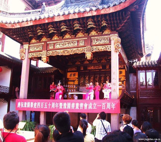 为了庆祝“豫园肇建四百五十周年暨豫园书画善会成立一百周年”,豫园邀请江西省景德镇市瓷乐团来园进行展演,演出日期从9月25日至11月10日,演出地点在豫园古戏台。图为中外游客纷纷驻足欣赏由瓷乐器演奏出的美妙乐曲。