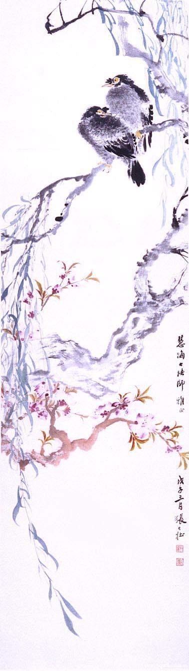 图为展品之一的张大壮《垂柳双鸦图》