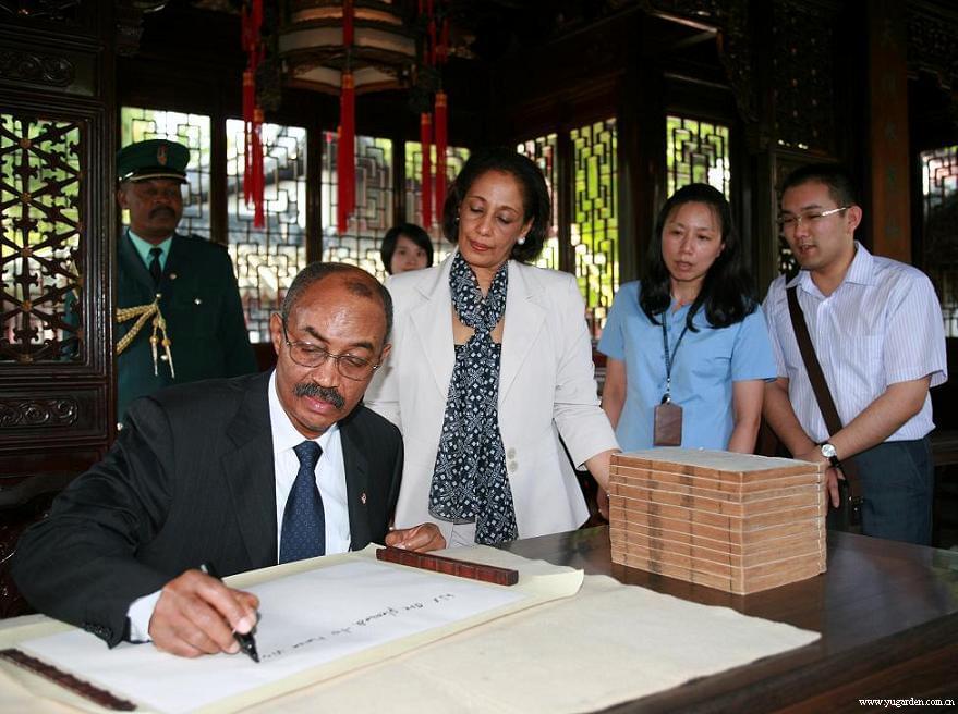 2010年5月24日,坦桑尼亚桑给巴尔副总统卡鲁姆(题词者)一行来园参观访问。副总统先生还为豫园题词:“我们很高兴在上海参观了如此美丽的豫园,这是我们每个人一生中难忘的经历,谢谢!”
