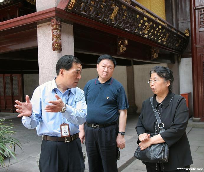 2010年5月25日,国家广电总局纪检组组长(右)一行在黄浦区文化局党委书记刘学明(中)的陪同下,来园参观访问。