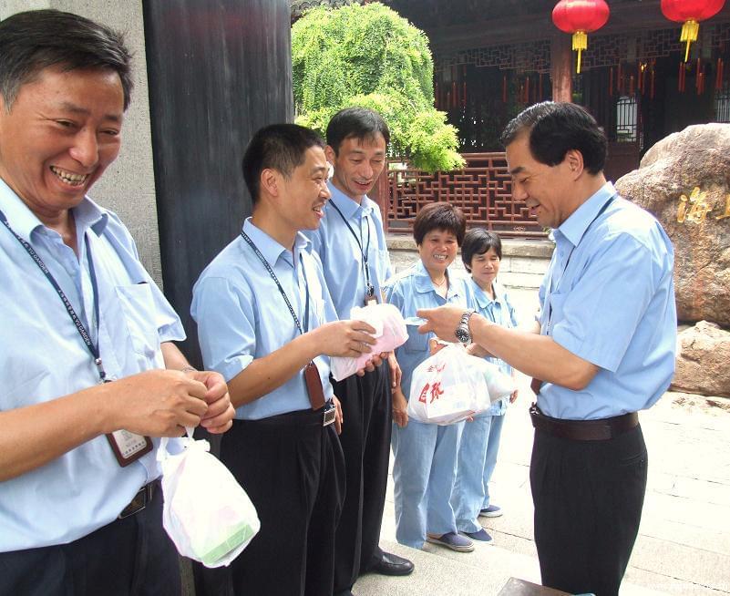 2010年7月1日,豫园工会对一线职工开展了高温慰问活动,向大家送上了单位的问候和防暑降温用品。