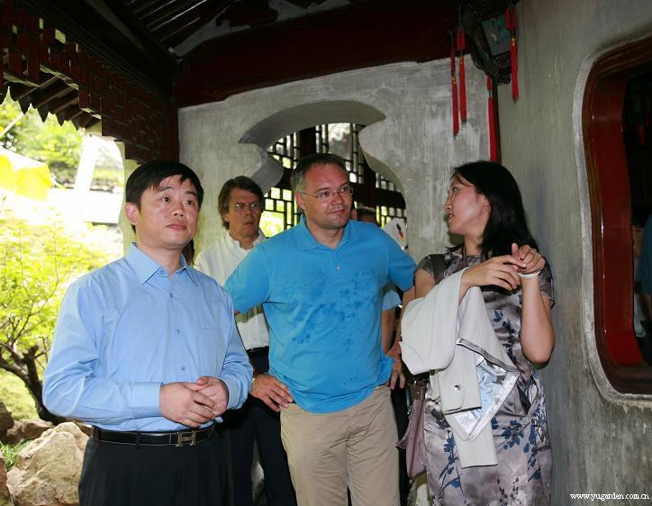 2010年9月2日,列支敦士登公国代理国家元首、摄政王储阿洛伊斯.列支敦士登阁下(右二)来园参观访问,王储阁下还为豫园题词:“非常感谢你们的热情接待,贵园给我留下了终身难忘的美好回忆”。
