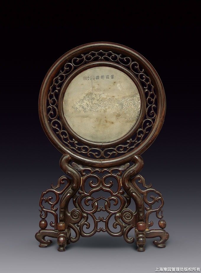 民国·气象万千楠木五狮图座嵌圆大理石插屏