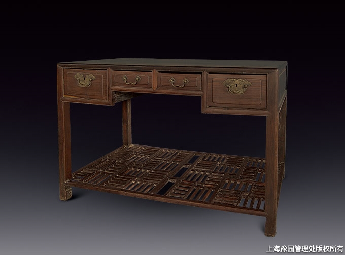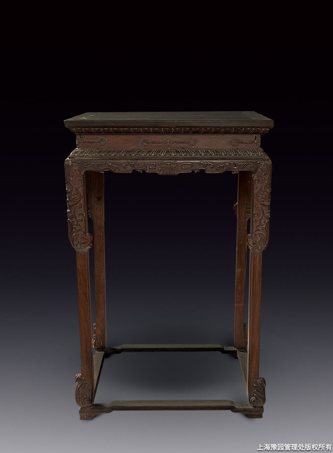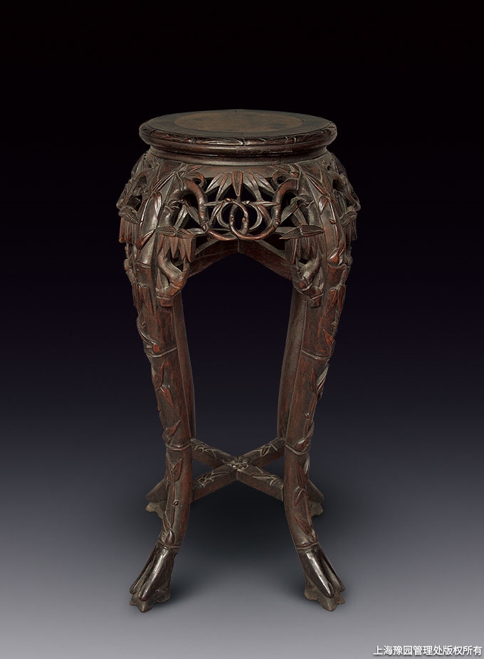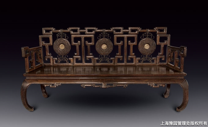 清·红木芭蕉叶形群雀寿桃纹贵妃榻