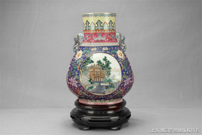 清·粉彩开光象耳尊