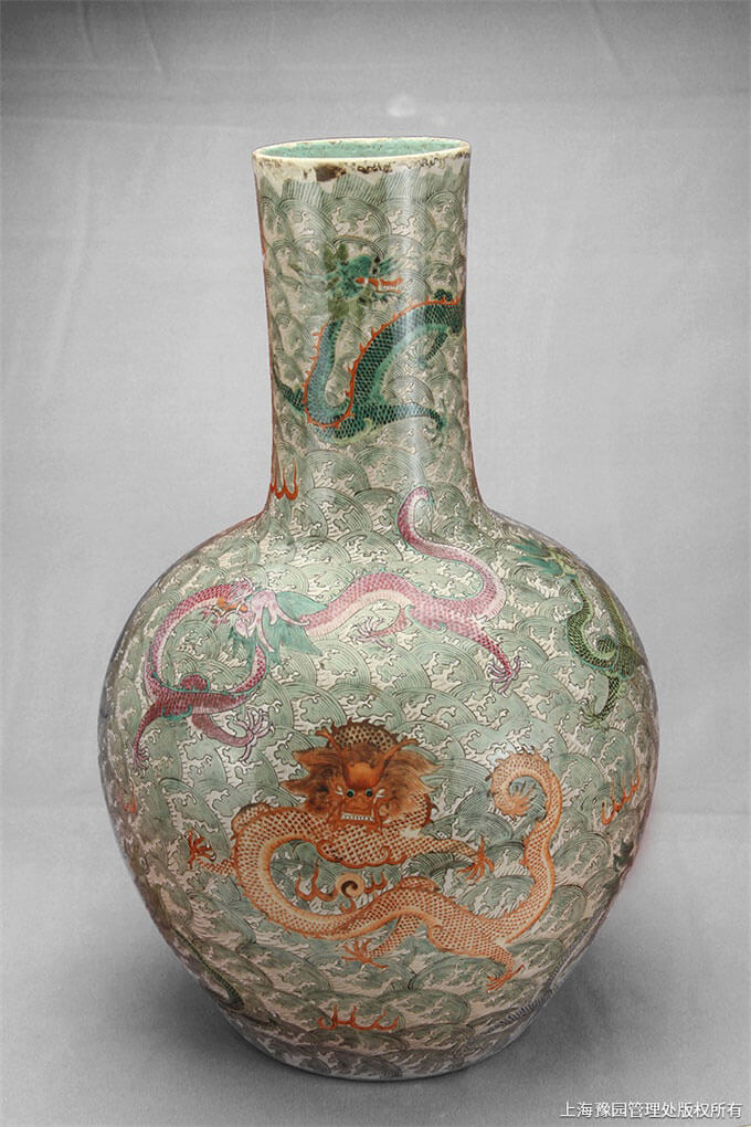 清·粉彩海水九龙瓶