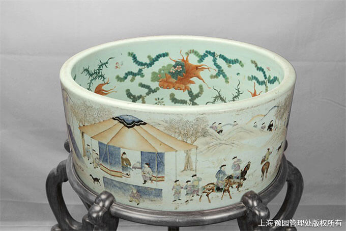 清·粉彩狩猎鱼藻纹鱼缸
