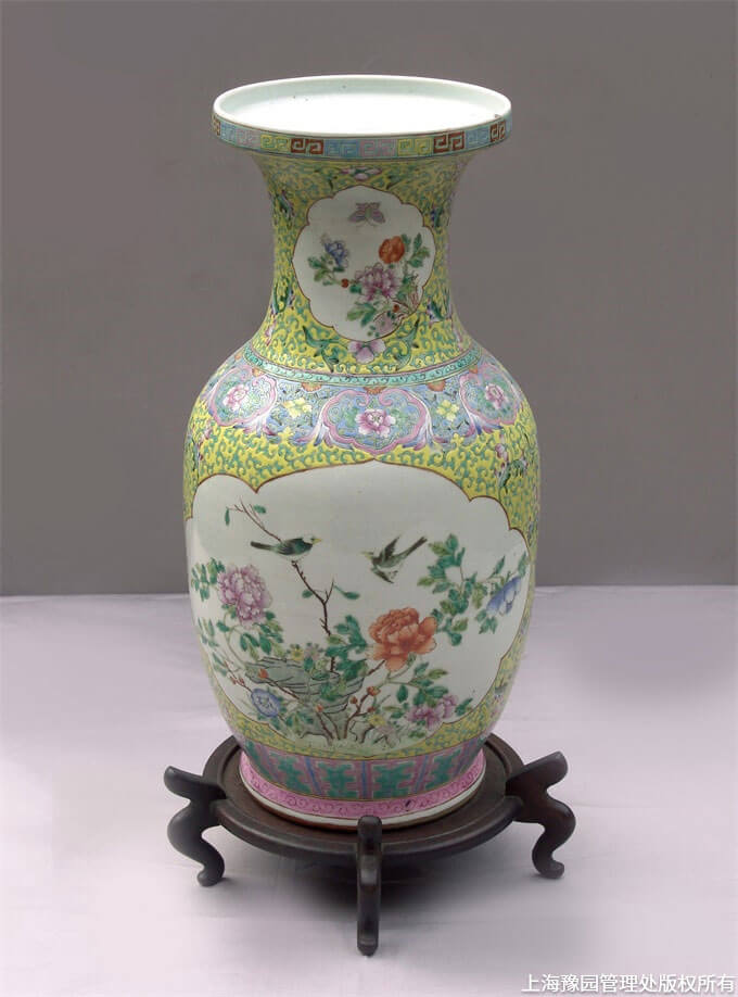 民国·粉彩开光花鸟纹瓶