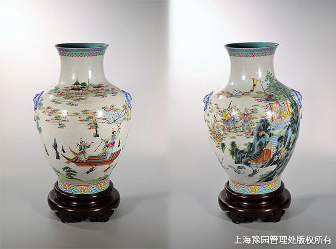 民国·粉彩人物象耳瓶-水漫金山