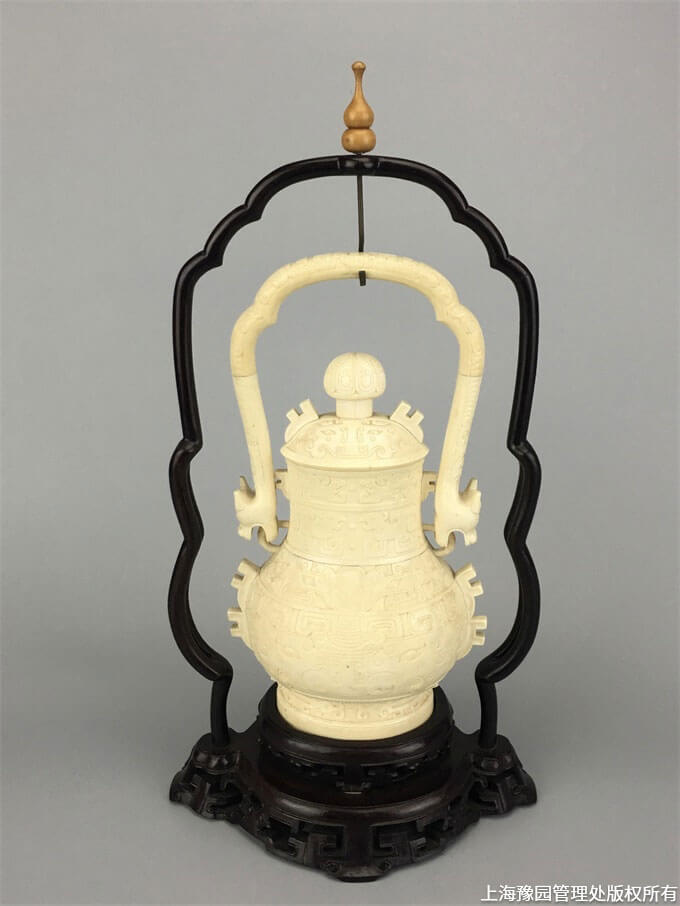 清·象牙雕提梁壶摆件