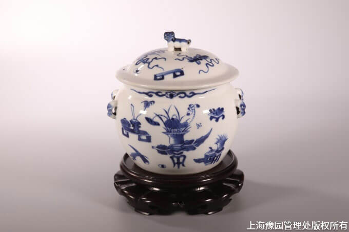 清同治·青花博古盖缸