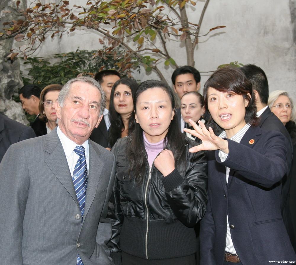 2006年12月5日,塞浦路斯共和国总统塔索斯.帕帕佐.普洛斯(前排左一)一行来园参观访问。总统阁下还为豫园题词:“很高兴来到豫园这样一个美丽安详的地方参观”。