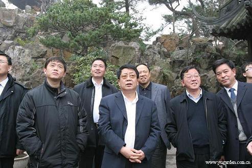 2008年1月10日,全国“扫黄打非”办专职副主任、国家新闻出版总署市场监管局局长李宝中(前排中)一行在黄浦区人民政府副区长沈祖炜(前排右二)的陪同下,来园视察工作.