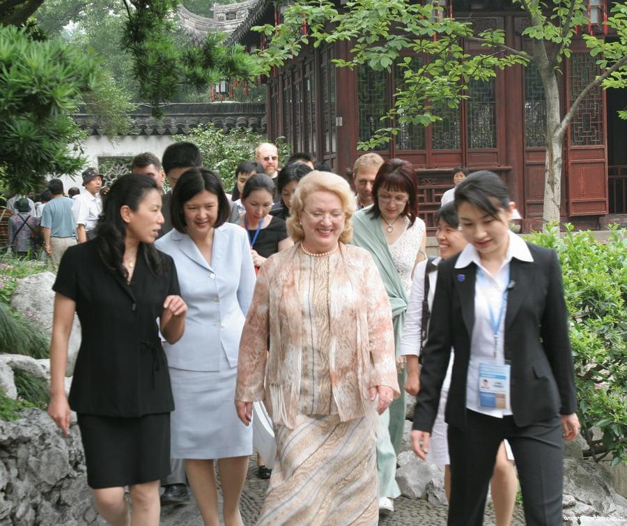 2006年6月15日,吉尔吉斯坦总统夫人巴基耶娃.塔季扬娜.瓦西里耶夫娜(前排中)一行来园参观访问。