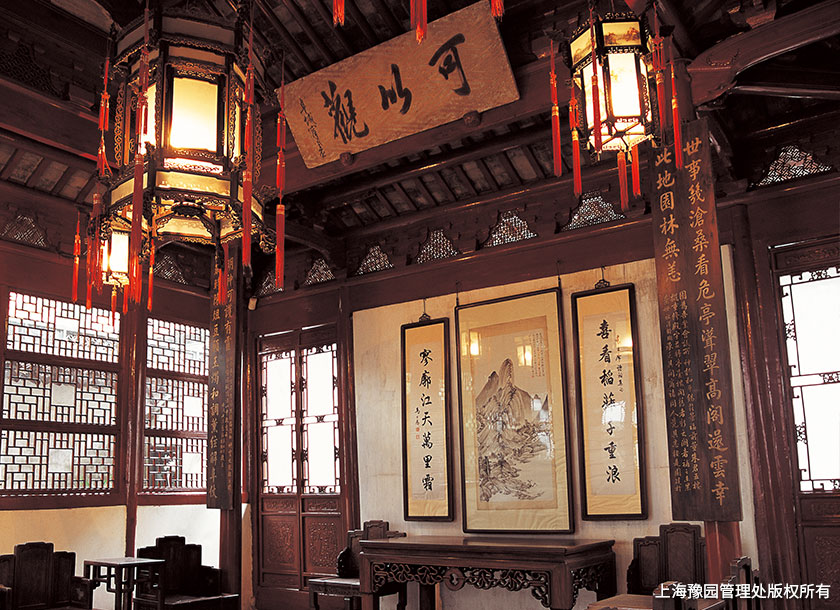 静观,亦称晴雪堂,曾是清代钱业总公所,深广高敞,是内园的主要建筑。面对假山,取古语“静观万物皆自得”之意,宜端坐于堂中,静观对面林立的奇峰异石。